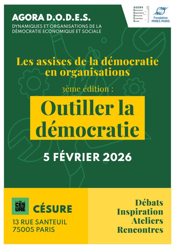 Le 5 février prochain, l’Agora DODES – Dynamiques et Organisations de la Démocratie Économique et Sociale organise la 3ème édition des Assises de la Démocratie en Organisations, à Césure.