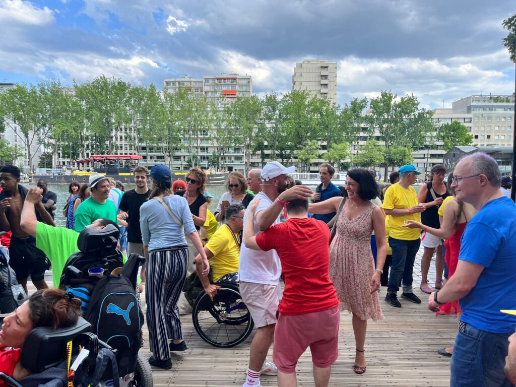 Un bal où les personnes qui ont l’habitude d’être aidées sont celles qui soutiennent et accompagnent. Un espace de co-fusion où le trouble génère la perte de repères, le lâcher prise, l’osmose, la communion, la communication par le mouvement, l’empathie.