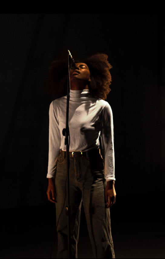 Ensaio sobre ter voz est une expérimentation scénique, une invitation au dialogue et à la réflexion sur la manière d’exister dans notre société actuelle, à partir de la perspective émotionnelle d’une Femme Noire. Ce travail est issu d’une recherche poétique et audiovisuelle lancée par l’artiste en 2016. Dans ce solo, la dramaturgie se mêle à la fiction et la réalité, avec pour but la reprise en main d’un récit historique invisibilisé pendant des siècles et qui se recrée de manière sensible sur scène. Cette forme scénique expérimentale aborde des questions politiques autour de l’expérience du corps noir dans une société raciste, d’un point de vue subjectif et existentiel. La performance de l’artiste propose un parcours affectif entre mémoires et temps présent, conduisant le public à un voyage vers la Guérison. Un travail puissant aux différentes couches de lecture.