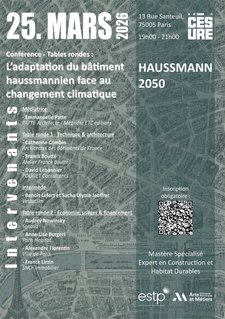 Cet événement a pour objectif de nourrir la réflexion collective et de favoriser les échanges autour des enjeux liés à l’adaptation thermique et énergétique du patrimoine Haussmannien. Il met en lumière les solutions innovantes portées par les acteur·rices du secteur face aux contraintes architecturales, techniques et réglementaires propres à ce bâti emblématique.