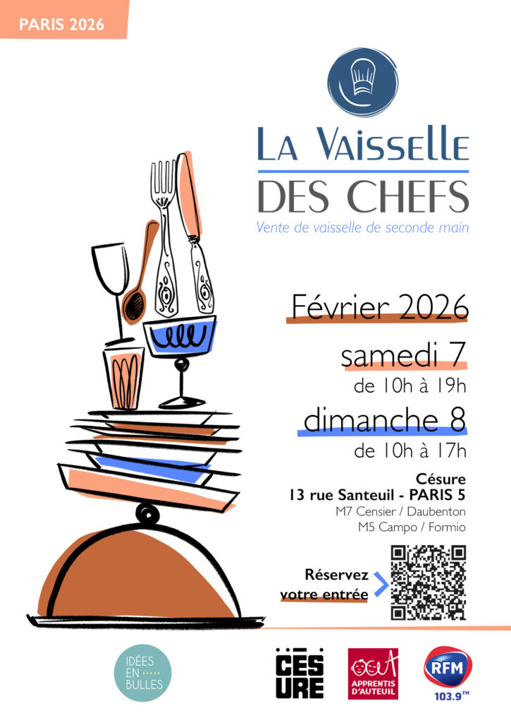 Venez chiner la vaisselle des tables gastronomiques de la capitale ! Une partie des recettes sera reversée aux Apprenti·es d’Auteuil.