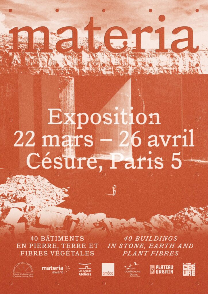 L’exposition et l’ouvrage Materia, qui s’inscrivent dans la continuité des deux éditions Fibra architectures (2019) et TerraFibra (2021), sont dédiés aux architectures contemporaines en terre, pierre et fibres végétales. Ils mettent en valeur les propriétés esthétiques, avantages constructifs et bénéfices environnementaux de 40 écoconstructions sélectionnées dans le cadre du prix materia award. Materia reflète la volonté de mettre en lumière des projets de réhabilitation exemplaires, en soulignant la complémentarité des matières. Elle vise une reconnaissance de ces bâtiments par la profession comme par le grand public, soulignant le courage des maîtres d’ouvrage qui ont fait le choix de ces matériaux, la créativité des concepteurs et le savoir-faire des artisans et entrepreneurs.